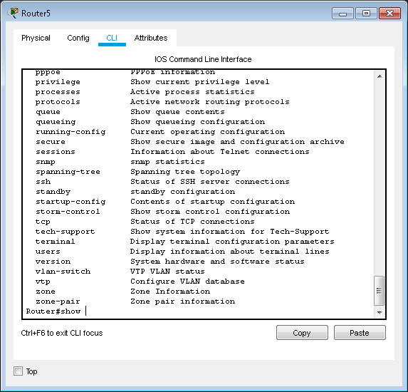 Pada lab ini saya akan menjelaskan perintah “show”. Perintah show dapat dilakukan di privilege Mode. Perintah show ini adalah kata “show” artinya menampilkan, jadi ketika kita gunakan perintah show ini maka kita harus tambahan syntak dibelakangnya. Untuk melihat apa saja yang bisa dilihat oleh perintah show ini dapat gunakan tanda “?” di belakangnya.